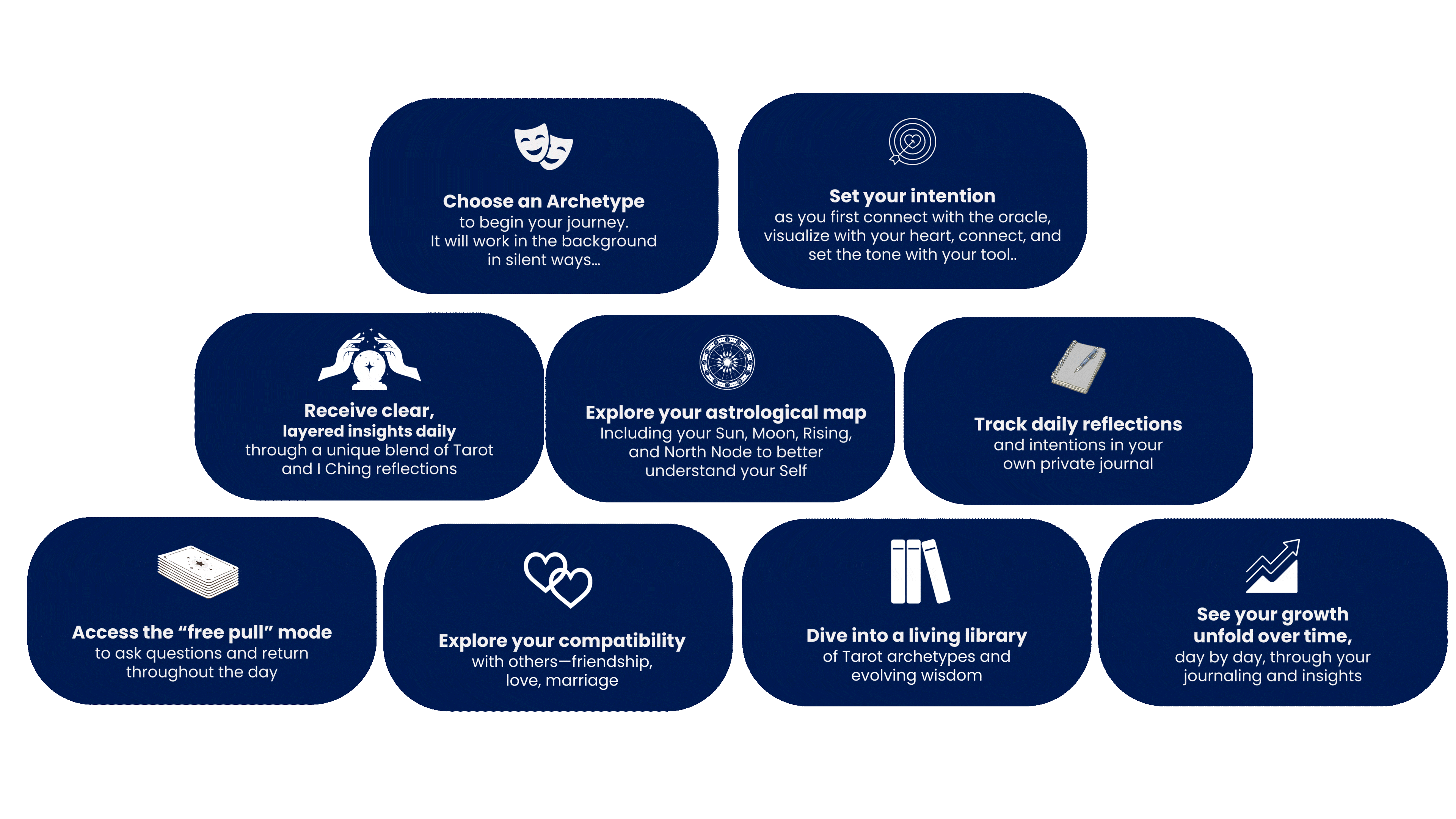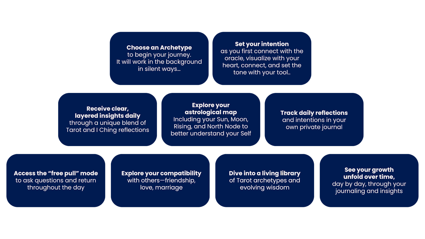 Access a library of insights on Tarot, I Ching, Meditations, with new tools added regularly.