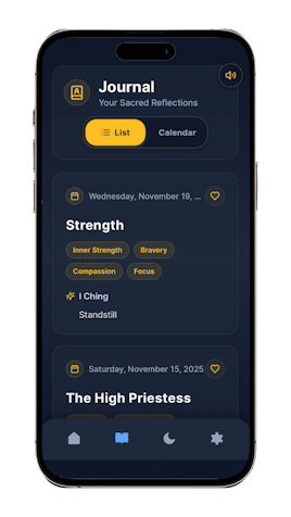 Every daily card and Hexagram pull is saved so you can see your patterns.