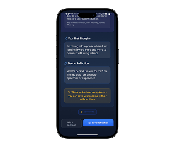 Write and reflect inside your app. Your entries are saved and easy to revisit.