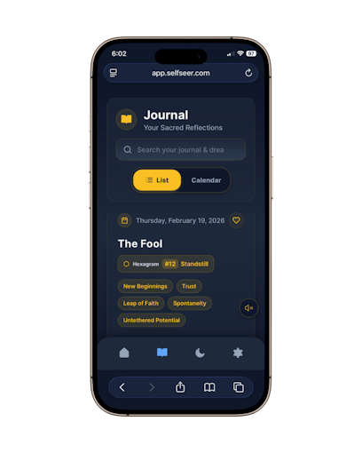 Every daily card and Hexagram pull is saved so you can see your patterns.
